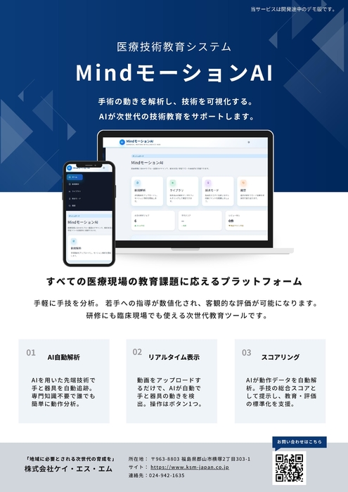 株式会社ケイ・エス・エムからのお知らせと新着情報2025-11-08【活動報告】オープンファクトリーKORIYAMA 2025 メイン開催が無事終了しましたNEW2025-10-30【お知らせ】メディカルクリエーションふくしま2025 MCF特別賞を受賞しました注目NEW2025-10-23MindモーションAI PR動画NEW2025-09-08メイカソン(in福島県立医大)参加ご報告注目2025-07-31”人事部” 福利厚生(WELLBOX加入)注目RSS(別ウィンドウで開きます)もっと見る 公式 X (旧 twitter) KSM@開発系ものづくり企業公式 X (旧:twitter) KSM@開発系ものづくり企業株式会社ケイエスエムです。福島県郡山市でものづくりをしております。さまざまな業界に対して、開発品を手掛けておりますがツイートは日々の事業等をゆるめに投稿してきます。興味のある方は是非フォローお願い致します!イチ推し - コンテンツ佐藤伊知郎/代表取締役 note 投稿です人材の事から、今取り組んでいる事、、、etc全て無料で投稿しておりますので、お時間ある際に見てみてください投稿はこちらから投稿はこちらから投稿はこちらから医療クリニック向け 搬送ロボット医療施設の業務改善へご活用下さいくわしくはこちらくわしくはこちらくわしくはこちらKSM内視鏡マウスピースのご紹介産学官連携-医療機器開発事業くわしくはこちらくわしくはこちらくわしくはこちらMindモーションAI - デジタルカタログMindモーションAIMindモーションAI PR動画MindモーションAI PR動画飲食業様向け ネコ型配膳ロボネコ型配膳ロボ医療施設向け AGV医療施設向けAGVキリンダンスメディア掲載事例2022年11月15日日刊工業新聞、医療器具を無人搬送 記事掲載2022年 読売新聞掲載マウスピースの取り組み福島県立医科大、医療機器開発支援センターとの共同事業2021年8月4日日本経済新聞、KSM飛沫防止付き内視鏡用マウスピース記事掲載2021年7月22日福島民報社、飛沫抑制予防の為の製品2019年1月22日 福島民報新聞掲載 事業部 紹介 会社案内 当社の会社概要をご覧いただけます。 金型事業部(プラスチック金型)主力事業、金型事業部のご紹介を致しますT&i (開発事業)- Technology & idea T&iの取り組みと、開発中案件のご紹介となります。 メディカル事業部 当社の取り組みを紹介致します。 お問い合わせについてZOOM、Temaes、各種Webやお電話での打ち合わせも可能です。お問い合わせはこちらから技術的なご相談や試作依頼などお気軽にご連絡ください 【TEL】024-942-1635【FAX】024-942-1637 ※受付時間:9時~17時30分(土・日・祝日を除く) くわしくはこちらくわしくはこちらくわしくはこちら